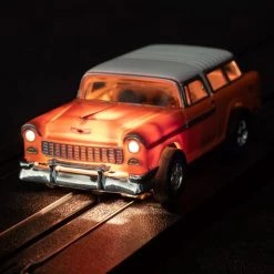 This is the Auto World 1955 Chevrolet Nomad (Orange) Xtraction Flamethrowers R33 HO Slot Car.