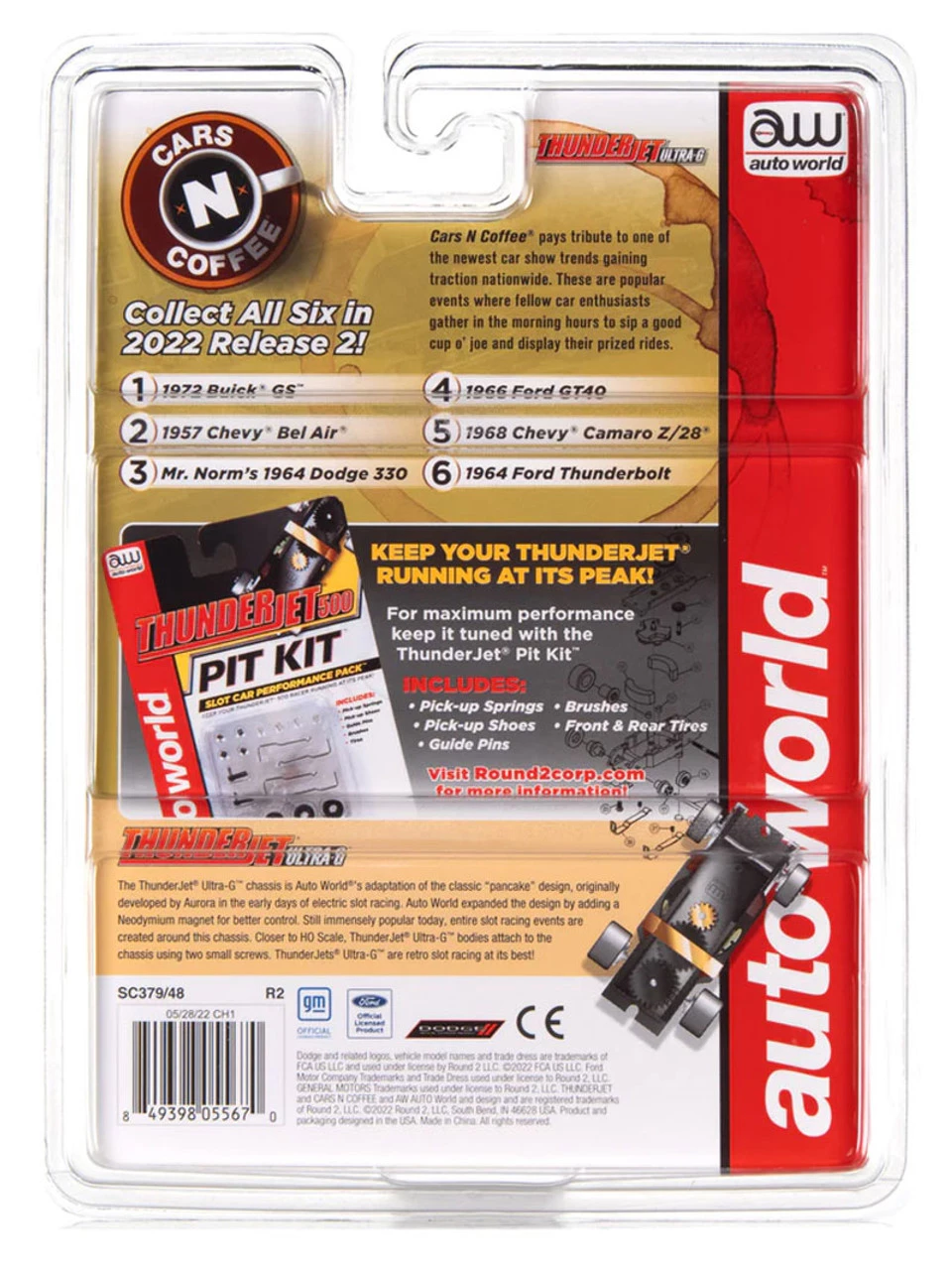 This is the Auto World 1957 Chevrolet Bel Air (Orange) Cars N Coffee Thunderjet HO Slot Car.