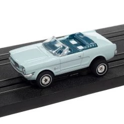 This is the Auto World 1965 Ford Mustang Convertible (Blue) Thunderjet HO Slot Car