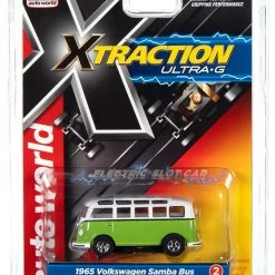 This is the Auto World 1965 Volkswagen Samba Bus (Green) X-Traction R34 HO Slot Car.