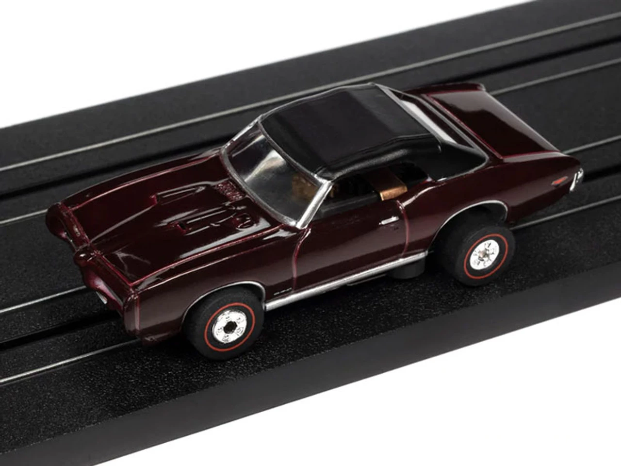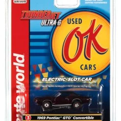 This is the OK USED CARS Auto World 1969 Pontiac GTO Convertible (Burgundy) Thunderjet HO Slot Car