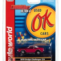 This is the OK USED CARS Auto World 1970 Dodge Challenger T/A Panther (Pink) Thunderjet HO Slot Car