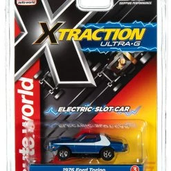 This is the Auto World 1976 Ford Torino (Blue) X-Traction R34 HO Slot Car