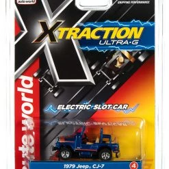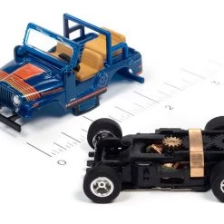This is the Auto World 1979 Jeep CJ-7 (Blue) X-Traction R34 HO Slot Car