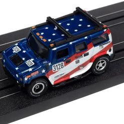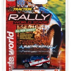 This is the Rally World Stage Auto World 2005 Hummer H2 (Blue) X-Traction HO Slot Car.