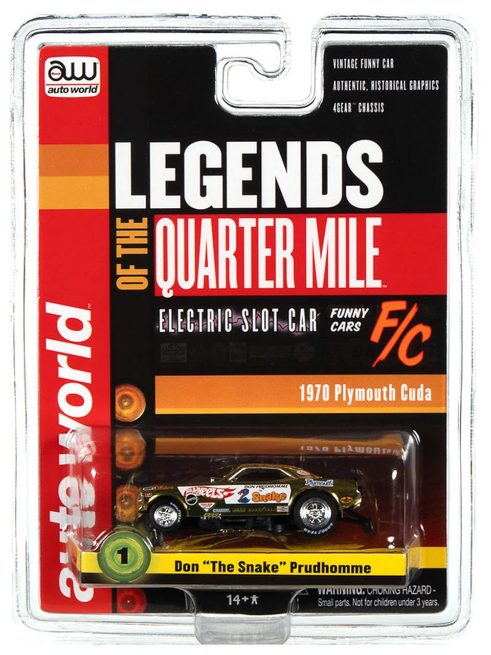 This is the Auto World Don “The Snake” Prudhomme 1970 Cuda Funny Car 4Gear R26 HO Slot Car