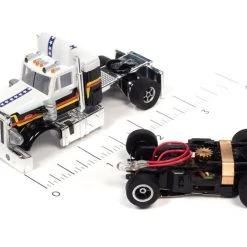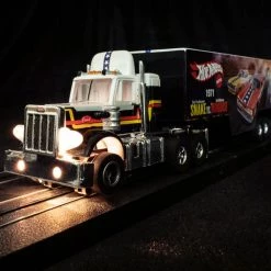 These tractor-trailer racing trucks feature an X-Traction chassis with working headlights and additional guide pin for easy “over the road” handling. All trailers feature dual axles, loads of detail and a guide pin for stability on the track.