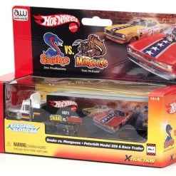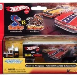 This is the Auto World Racing Rig Peterbilt Model 359 w/Race Trailer (Snake vs. Mongoose) X-Traction Flamethrowers R12 HO Slot Car.