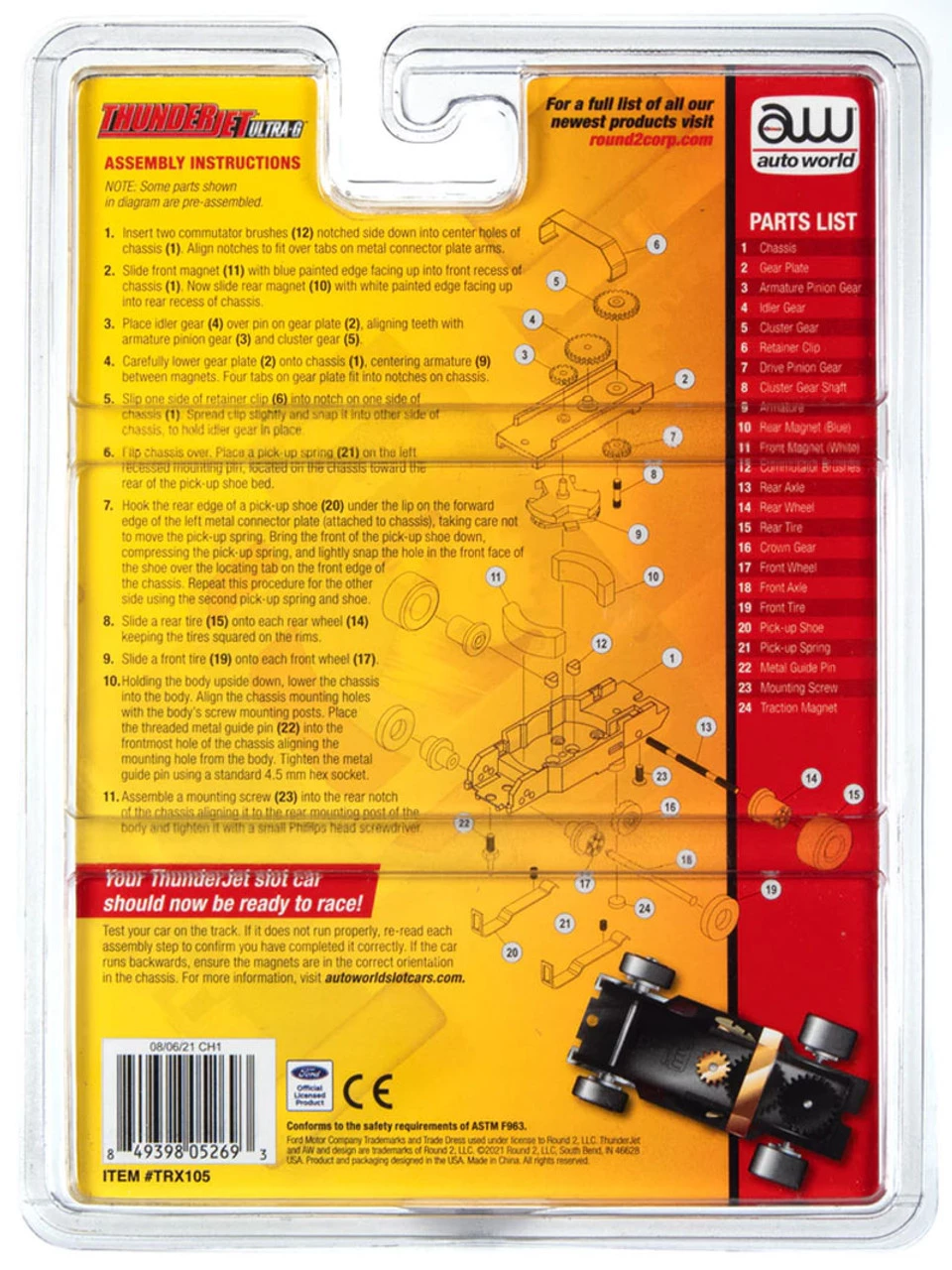 Build a complete Thunderjet Slot Car – Includes an unpainted 1970 Ford Mustang Body.