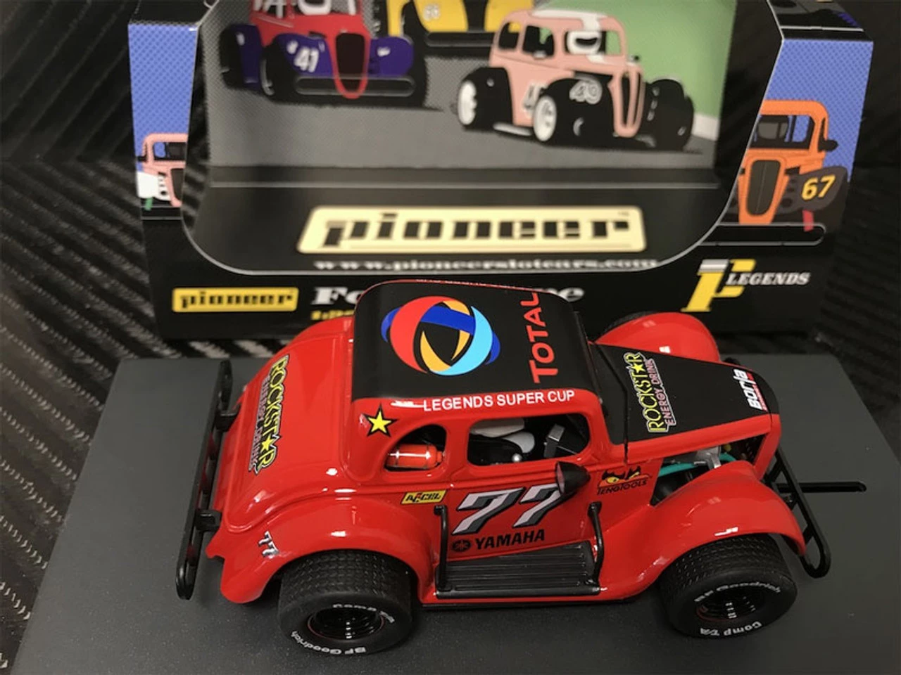 This is the Pioneer 1934 Ford Coupe Legends Racer #77 Red 1/32 Slot Car. The new #77 car in bright red now joins the Legends Super Cup race series!
