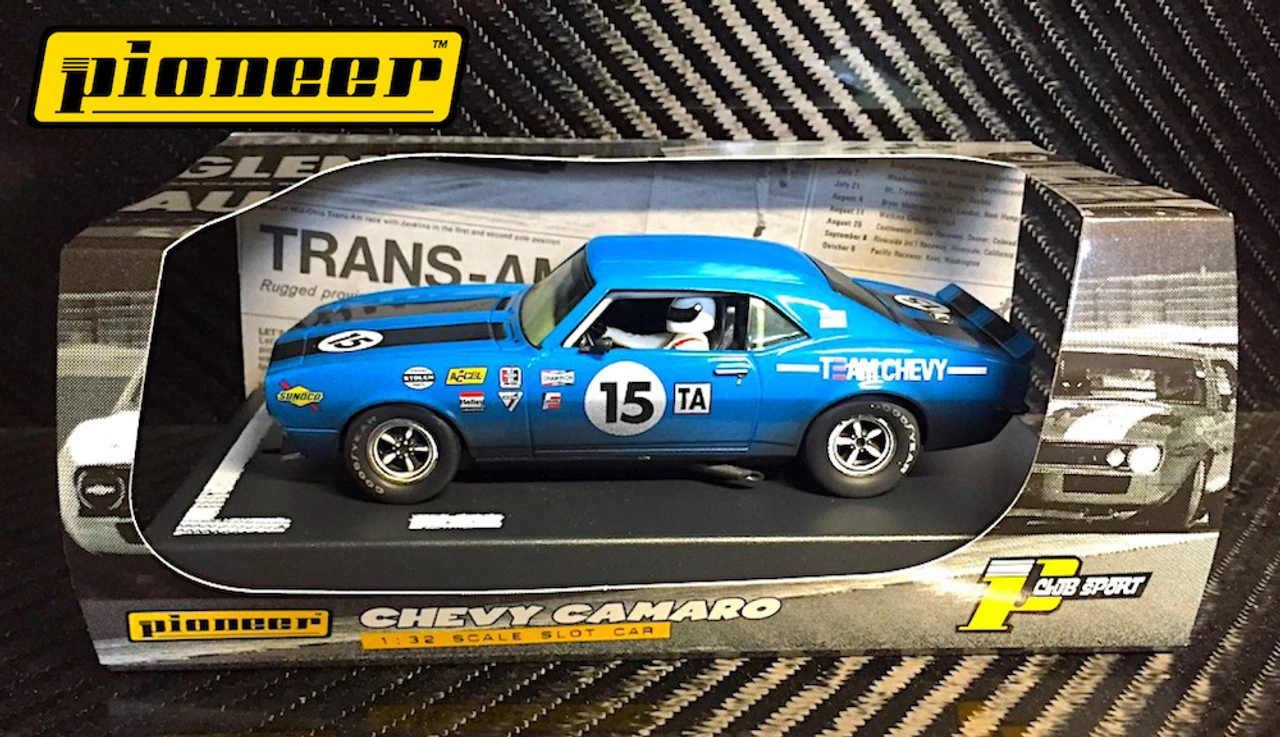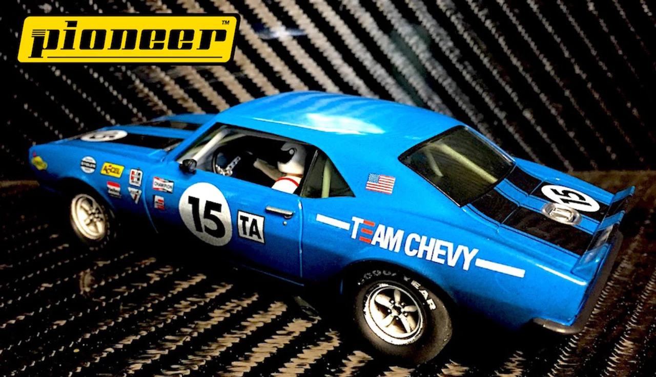 This is the Pioneer 1968 Chevy Camaro #15 Blue 12hr Enduro Racer 1/32 Slot Car