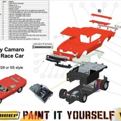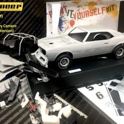 This is the Pioneer 1968 Chevy Camaro Race Car Paint It Yourself PIY Kit 1/32 Slot Car. These kits give modelers of all ages the opportunity to both customize their vehicle and learn about the mechanical workings of the cars.
