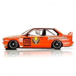 This is the Scalextric BMJ E30 M3 ‘Jagermeister’ 1988 Mario Ketter DTM 1/32 Analog Slot Car. The BMW E30 M3 raced across many nations and series, featuring an array of iconic color schemes. There werent many better than this fantastic orange livery, from the famous drinks manufacturer. Driven by Mario Ketterer for the 1988 DTM season, sadly the results did not match the success of the livery, however, the car did leave a lasting impression on anybody who saw it race.