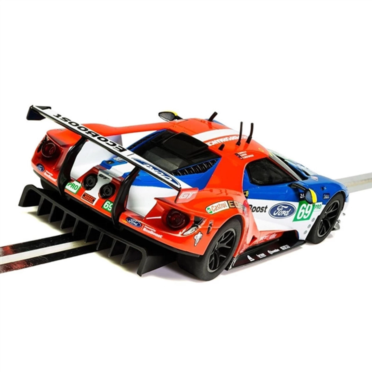 This is the Scalextric Ford GTE n.69 Le Mans 2017 1/32 Slot Car. The No. 69 Ford raced with Australians Ryan Briscoe, Scott Dixon and Brit Richard Westbrook at the wheel. The car finished 7th in class at Le Mans 2017.