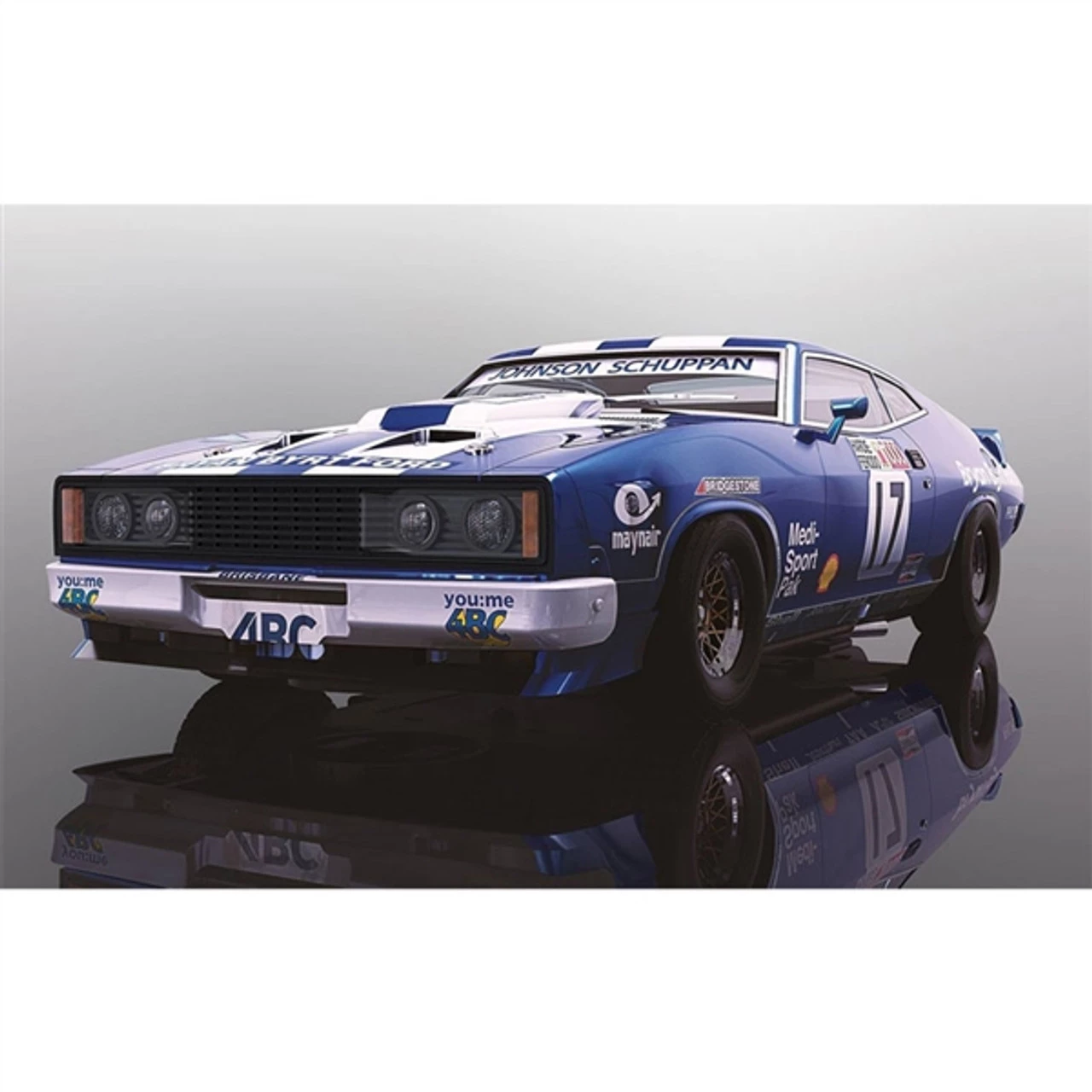 This is the Scalextric Ford XC Falcon – Dick Johnson 1978 Bathurst 1/32 Analog Slot Car. Finishing fifth in the 1978 Hardie-Ferodo 1000 at the Mount Panorama circuit, this Ford Falcon XC was driven by Dick Johnson and Vern Schuppan. Finishing one place higher than their shootout position, 1978 marked the first of 20-consecutive top ten starts at Bathurst for Dick Johnson.